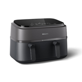 سرخ کن دوقلو فیلیپس مدل NA350 دارای دو مخزن جداگانه با مجموع ظرفیت 9 لیتر است. این طراحی به شما اجازه میدهد همزمان دو نوع غذا را با تنظیمات دمایی و زمانی متفاوت تهیه کنید. از این قابلیت میتوانید برای پخت غذاهای متنوع مانند سیبزمینی سرخشده، مرغ سوخاری، سبزیجات گریلشده و دسرها استفاده کنید.