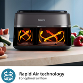 این سرخ کن با بهرهگیری از فناوری Rapid Air و گردش هوای گرم 360 درجه، غذاها را به صورت یکنواخت و با کمترین میزان روغن پخته و سرخ میکند. نتیجهی این فناوری، غذاهایی ترد و خوشمزه در بیرون و نرم و آبدار در داخل است.