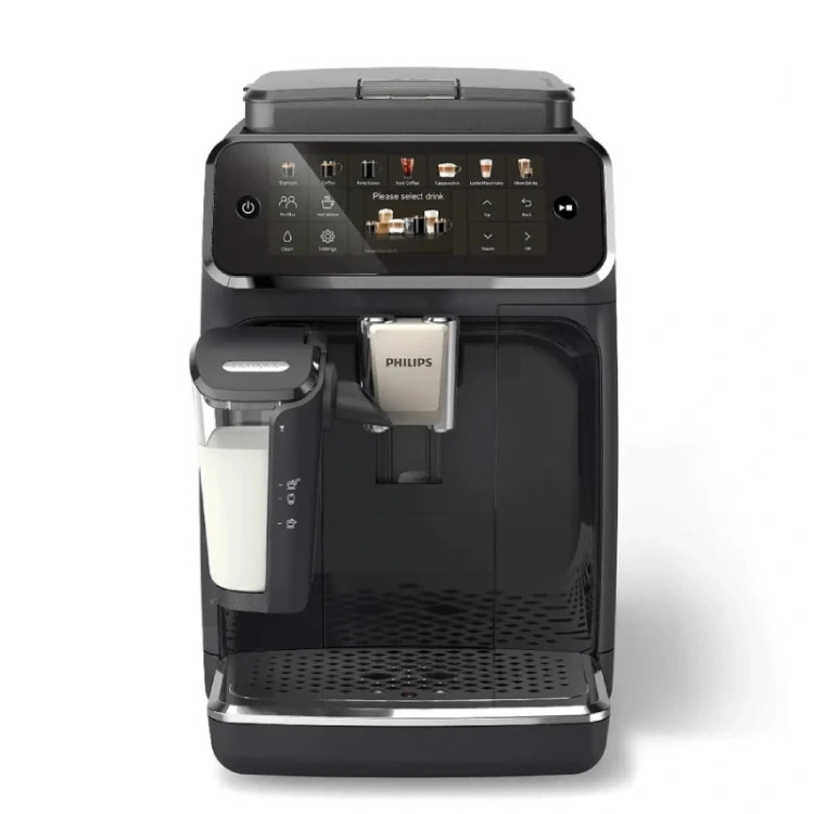 دستگاه دارای صفحه نمایش دیجیتال لمسی است که امکان انتخاب نوشیدنی، تنظیمات آسیاب و کنترل دمای نوشیدنی را بهراحتی فراهم میکند.