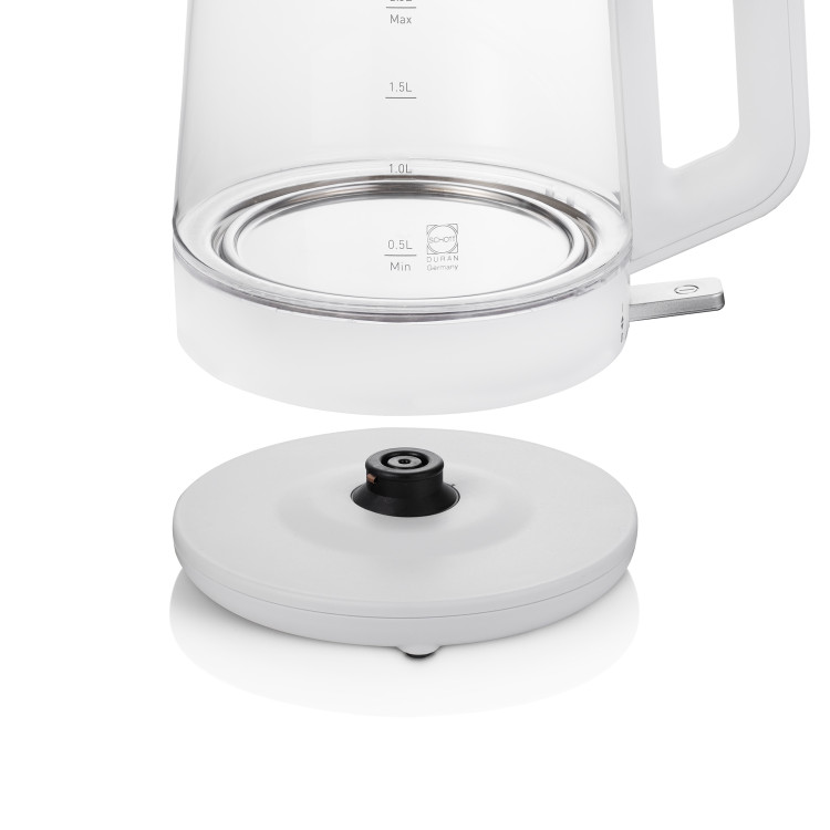 هم کتری ۲ لیتری و هم قوری ۱ لیتری این دستگاه از شیشه مقاوم و باکیفیت SCHOTT آلمان ساخته شدهاند که در برابر حرارت و ضربه مقاوم بوده و شفافیت خود را حفظ میکنند. همچنین استفاده از ترموستات پیشرفته Strix انگلستان در سیستم کنترلی دستگاه، دقت بالا، ایمنی بیشتر و عمر طولانیتر را تضمین میکند.