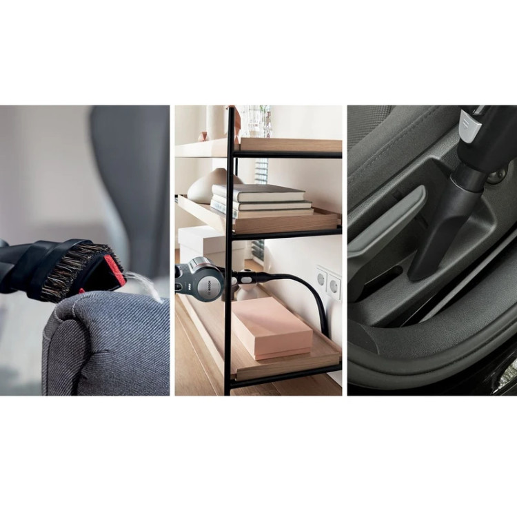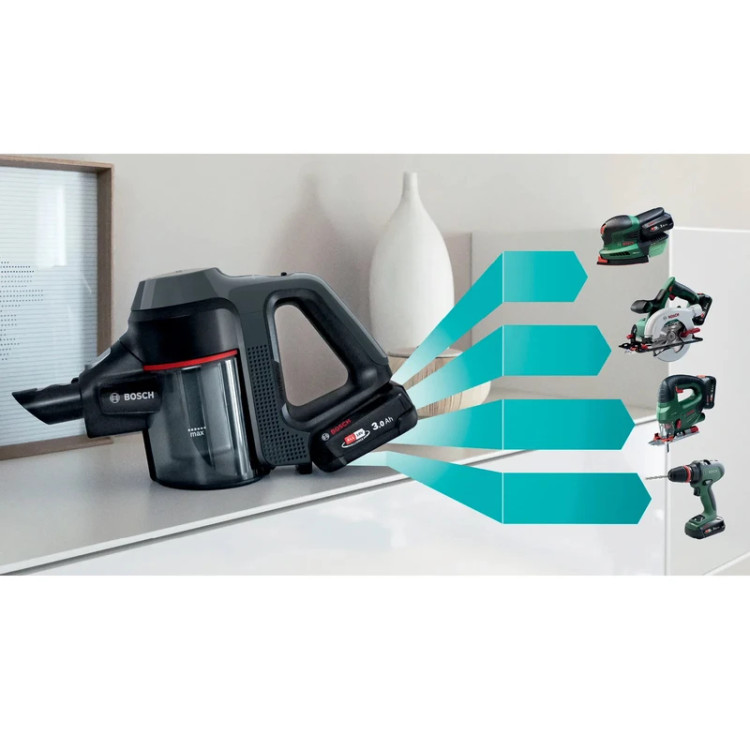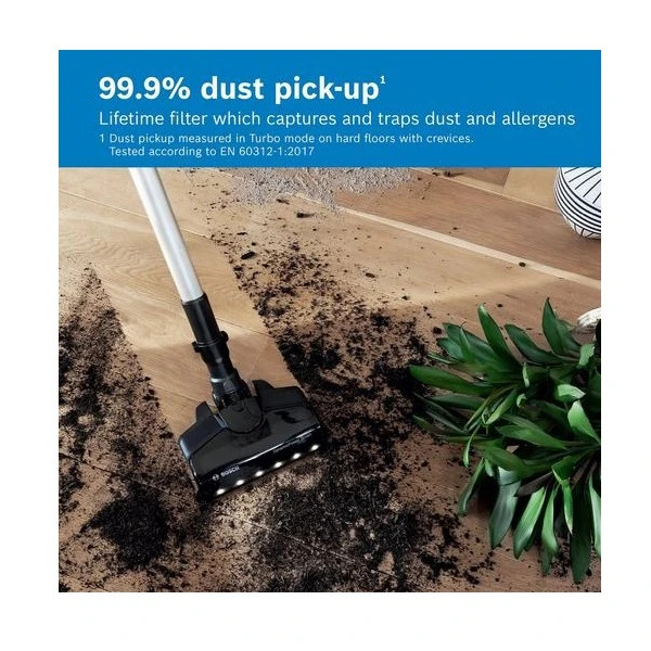سایر ویژگی ها : تشخیص باتری هوشمند: به طور خودکار عملکرد و زمان اجرا را با توجه به نوع باتری بهینه می کند / تخلیه آسان: تخلیه سریع و بهداشتی جعبه گرد و غبار / RotationClean: تمیز کردن سریع و آسان فیلتر – بدون نیاز به شستشوی فیلتر.
