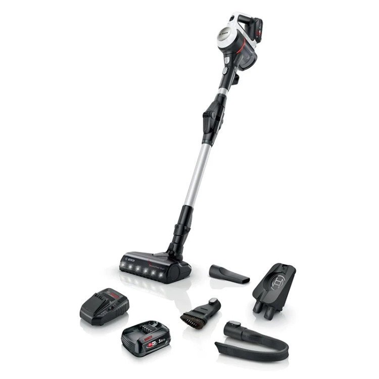 لوازم جانبی : 1 عدد نازل شکافی / 1 عدد کابل شارژ / 1 عدد شارژر سریع / 2 عدد بسته باتری قابل تعویض / 1 عدد جایگاه اتصال / 1 عدد برس مبلمان و نازل اثاثه یا لوازم داخلی / 1 عدد نازل شکاف انعطاف پذیر بلند