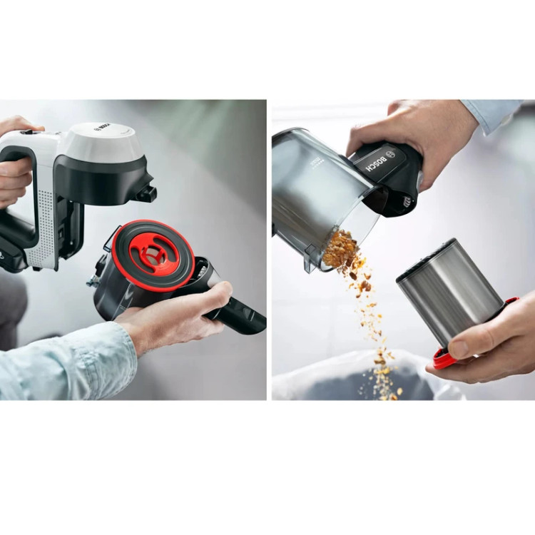 سایر ویژگی ها : تشخیص باتری هوشمند: به طور خودکار عملکرد و زمان اجرا را با توجه به نوع باتری بهینه می کند / تخلیه آسان: تخلیه سریع و بهداشتی جعبه گرد و غبار / RotationClean: تمیز کردن سریع و آسان فیلتر – بدون نیاز به شستشوی فیلتر.