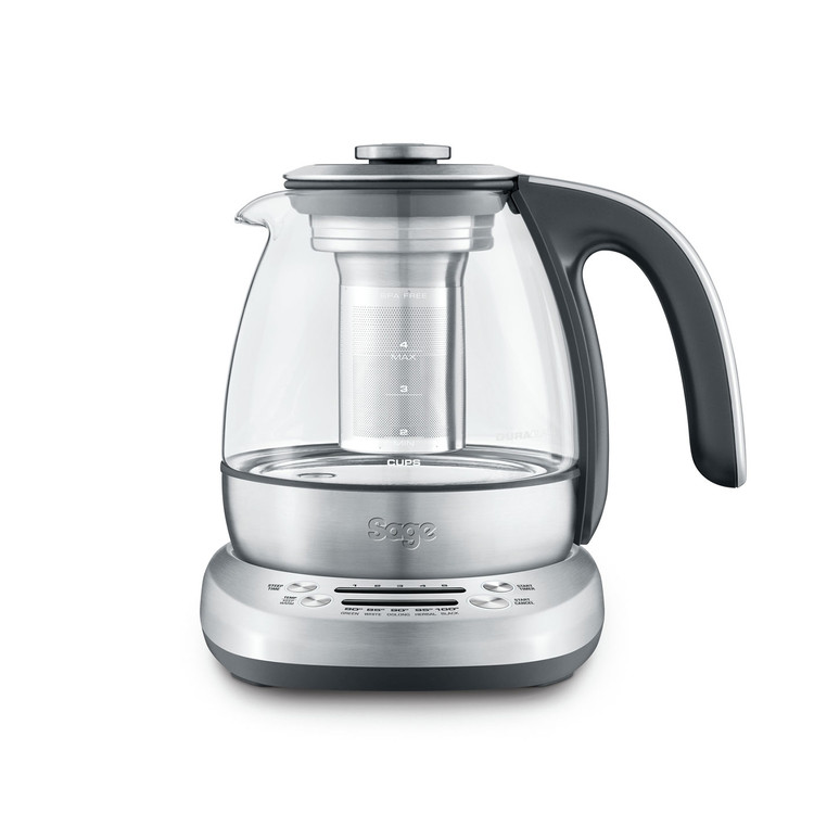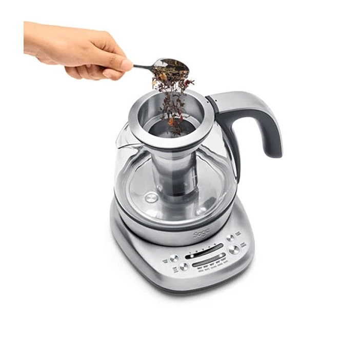 چایساز سیج STM500 با رنگ استیل شیک طراحی شده و جلوهای مدرن به آشپزخانه شما میبخشد. برخلاف بسیاری از مدلها، این دستگاه دارای قوری جداگانه نیست و از یک سبد توریشکل آسانسوری برای دمآوری چای استفاده میکند. این سبد از استیل ضدزنگ ساخته شده و دارای درب است تا دمآوری کامل و یکنواخت چای را تضمین کند.