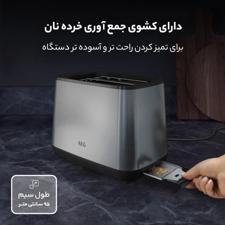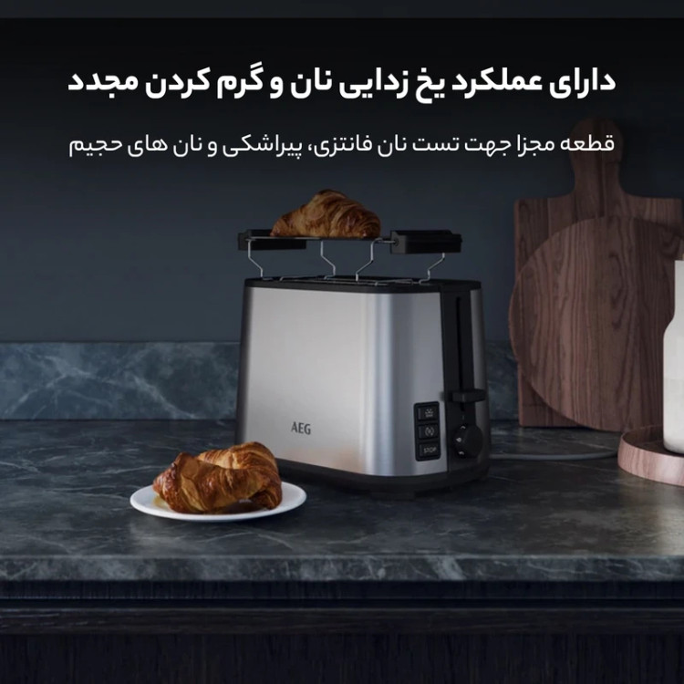 توستر نان آاگ مدل T3-1-3ST یکی از محصولات کاربردی و خوشساخت برند AEG است که برای برشته و گرم کردن انواع نان طراحی شده و میتواند شروع یک صبحانه لذتبخش را برای شما رقم بزند. این توستر با توان مصرفی 800 وات عملکردی سریع و یکنواخت ارائه میدهد و در مدت زمان کوتاهی نانها را به میزان دلخواه شما برشته میکند. چه نان تست، چه کروسان، رول، تکههای نان سنگک یا بربری، این دستگاه بهراحتی از پس گرم کردن و تازهسازی آنها برمیآید.