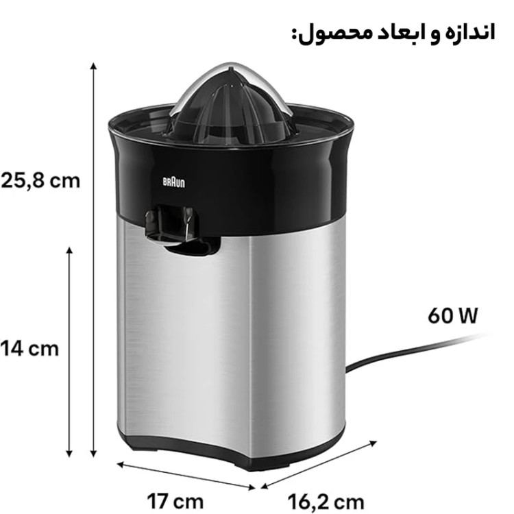 آب مرکباتگیر براون مدل CJ5050 یک دستگاه کاربردی و خوشساخت برای تهیه آبمیوههای طبیعی، بهویژه در روزهای سرد سال است. این مدل با طراحی ساده و عملکرد مؤثر، امکان گرفتن آب انواع مرکبات مانند پرتقال، لیمو، نارنج و گریپفروت را با کمترین زحمت فراهم میکند. موتور 60 واتی دستگاه با وجود مصرف انرژی پایین، قدرت کافی برای آبگیری سریع و یکنواخت دارد و در عین حال بسیار کمصدا کار میکند.