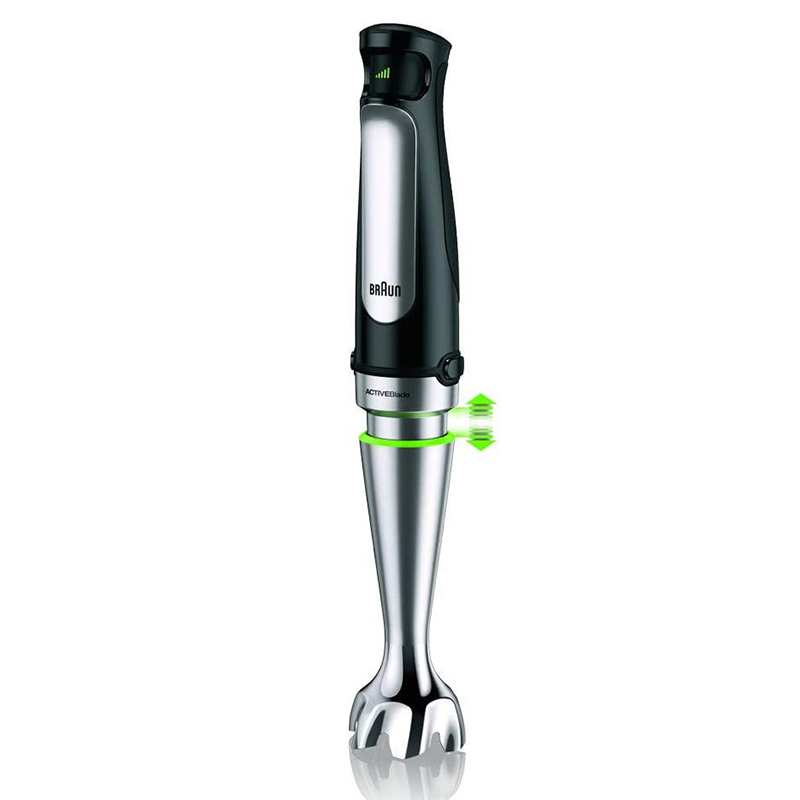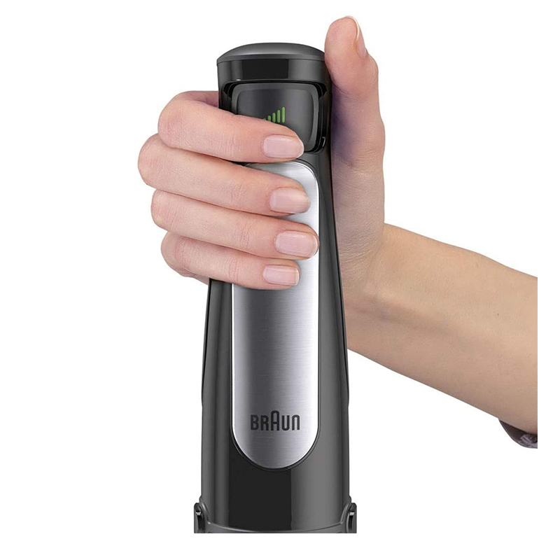 روی دسته دستگاه یک دکمه کنترلی قرار دارد که امکان تنظیم سرعت متغیر را متناسب با نوع مواد غذایی فراهم میسازد.