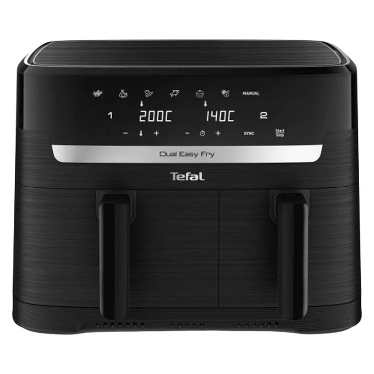 سرخکن دوقلو تفال EY901N40 با طراحی مدرن و رنگ مشکی شیک تولید شده و پنل لمسی آن در قسمت جلویی، کاربری بسیار سادهای دارد.
