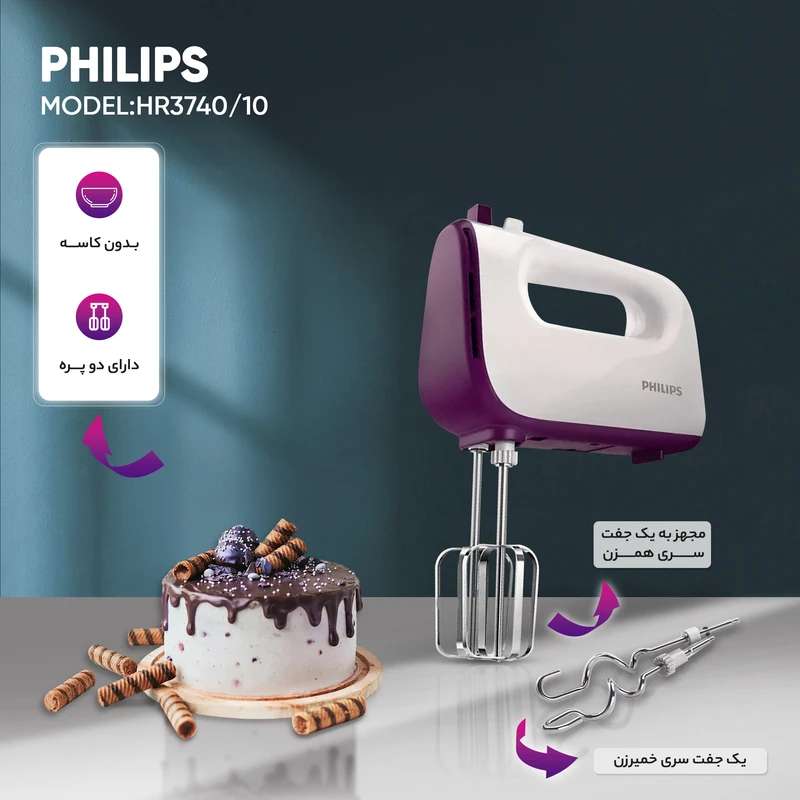 اگر به دنبال یک همزن دستی قدرتمند، بادوام و خوشدست هستید، همزن دستی فیلیپس مدل HR3740 انتخابی بسیار مناسب است. موتور 400 وات، 5 سرعت قابل تنظیم، عملکرد توربو و سریهای متنوع، این دستگاه را به گزینهای ایدهآل برای آشپزی و شیرینیپزی خانگی تبدیل کرده است. کیفیت ساخت بالا و طراحی ارگونومیک فیلیپس نیز خیال شما را از بابت استفاده طولانیمدت راحت میکند.