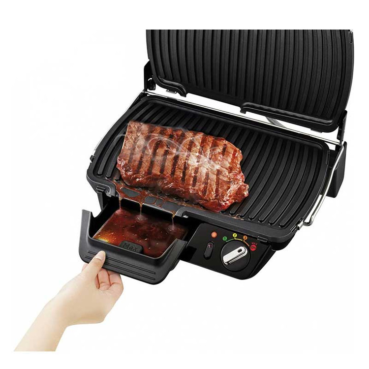 یکی از مزایای مهم گریل تفال مدل GC461B34، انعطافپذیری در نحوه استفاده است. این دستگاه هم بهصورت تماسی برای پخت سریع قابل استفاده بوده و هم امکان باز شدن تا زاویه 180 درجه را دارد که آن را به یک باربیکیو کلاسیک تبدیل میکند. در حالت 180 درجه، سطح پخت عملاً دو برابر شده و میتوانید حجم بیشتری از مواد غذایی را بهطور همزمان گریل کنید.