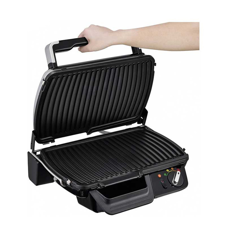 گریل برقی تفال GC461B34 به 4 سطح ترموستات قابل تنظیم مجهز شده است که امکان انتخاب شدت حرارت متناسب با نوع غذا را فراهم میکند. همچنین وجود تایمر دیجیتال، کنترل کامل فرآیند پخت را در اختیار شما قرار میدهد. با تنظیم زمان موردنظر، دیگر نیازی به نظارت مداوم بر غذا نیست و پس از پایان زمان پخت، دستگاه با هشدار شما را مطلع میکند.