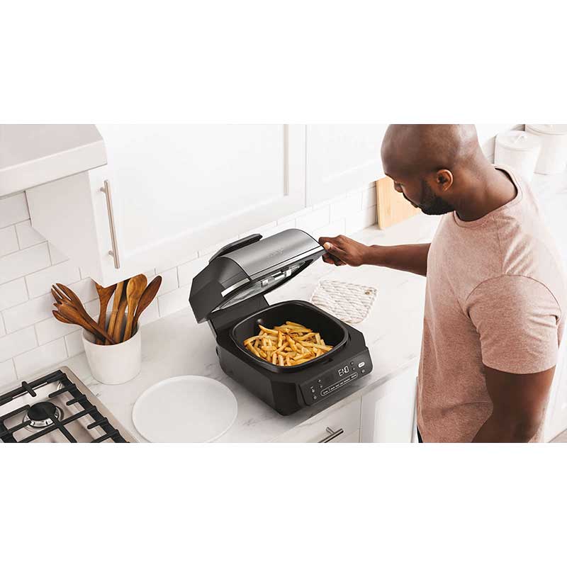 گریل هواپز نینجا مدل EG351 یک دستگاه ۵ کاره پیشرفته است که امکان پخت خلاقانه و متنوع غذاها را فراهم میکند. این مدل با ترکیب پنج عملکرد اصلی گریل، سرخ کردن با هوا، برشته کردن، پخت و آبگیری (خشک کردن)، یک تحول اساسی در آشپزی روزمره ایجاد مینماید. با توان ۱۷۶۰ وات، این دستگاه غذاها را به سرعت و با کیفیت بالا آماده میکند.