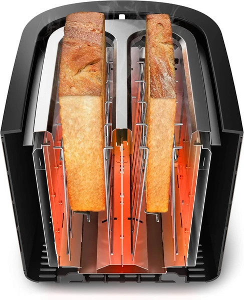 جنس بدنه از فلز مقاوم ساخته شده که علاوه بر زیبایی، استحکام و دوام بالای دستگاه را تضمین میکند. بر روی بدنه، دو درگاه یا اسلات پهن طراحی شده که امکان قرار دادن همزمان دو برش نان را فراهم میکند. این درگاهها برای انواع نان تست، نان سنگک و بربری، رولها، کروسانها و حتی شیرینیها کاملاً مناسب هستند.