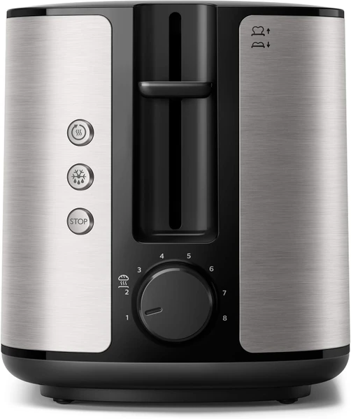 جنس بدنه از فلز مقاوم ساخته شده که علاوه بر زیبایی، استحکام و دوام بالای دستگاه را تضمین میکند. بر روی بدنه، دو درگاه یا اسلات پهن طراحی شده که امکان قرار دادن همزمان دو برش نان را فراهم میکند. این درگاهها برای انواع نان تست، نان سنگک و بربری، رولها، کروسانها و حتی شیرینیها کاملاً مناسب هستند.
