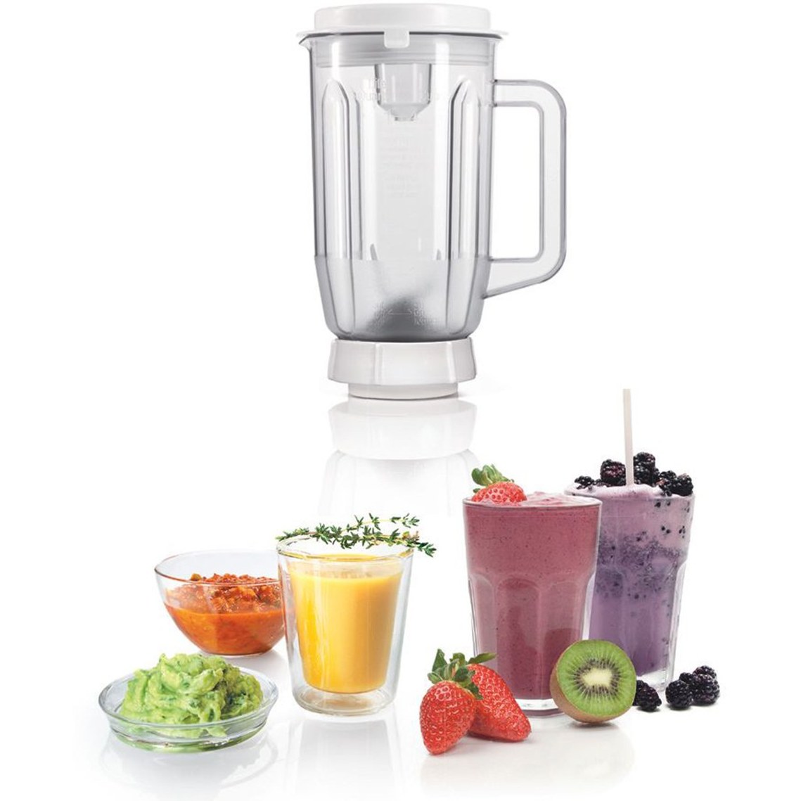 ماشین آشپزخانه بوش مدل MUM48CR1 دارای یک پارچ مخلوطکن 1 لیتری از جنس پلاستیک مقاوم است. با استفاده از این پارچ میتوانید انواع نوشیدنیها، اسموتیها، سسها و مخلوطهای مختلف را بهراحتی آماده کنید.
