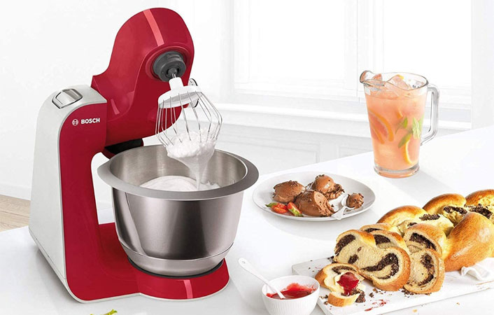 ماشین آشپزخانه بوش MUM58720 مجهز به کاسه استیل ضد زنگ با ظرفیت 3.9 لیتر است که قادر است: