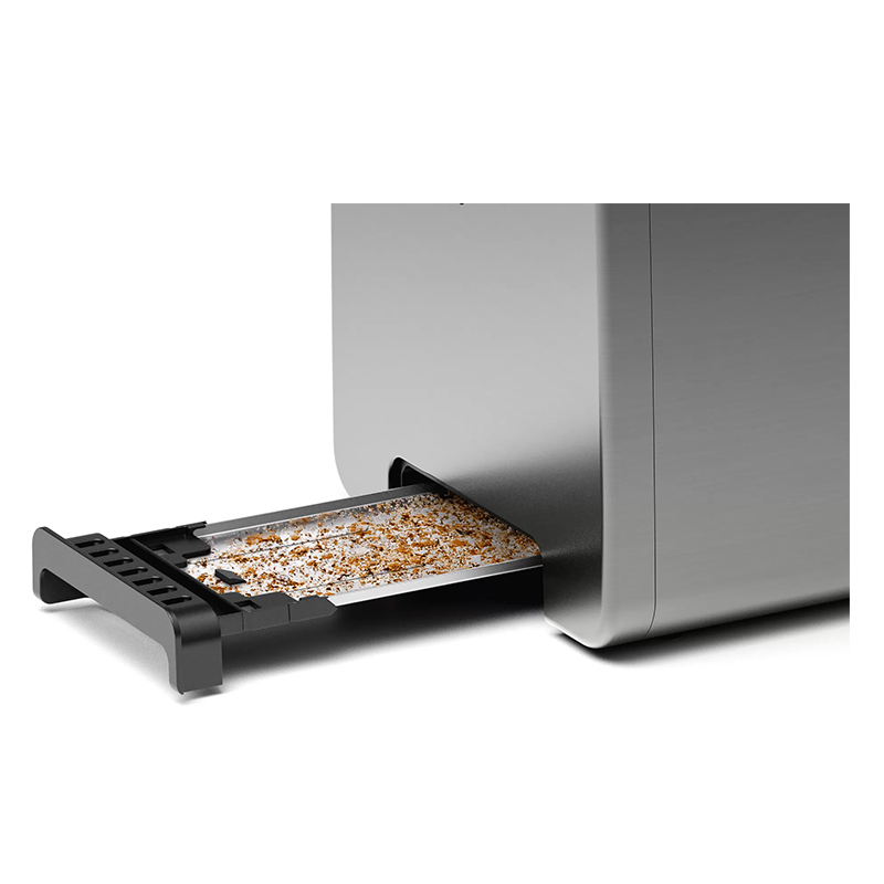 وجود کشوی جمعآوری خرده نان در قسمت پایینی دستگاه، نظافت را بسیار آسان کرده و از کثیف شدن سطح اطراف جلوگیری میکند. همچنین در زیر بدنه دستگاه پایههای ضد لغزش تعبیه شده که مانع از حرکت ناخواسته توستر هنگام کار میشود.