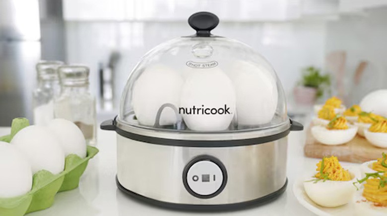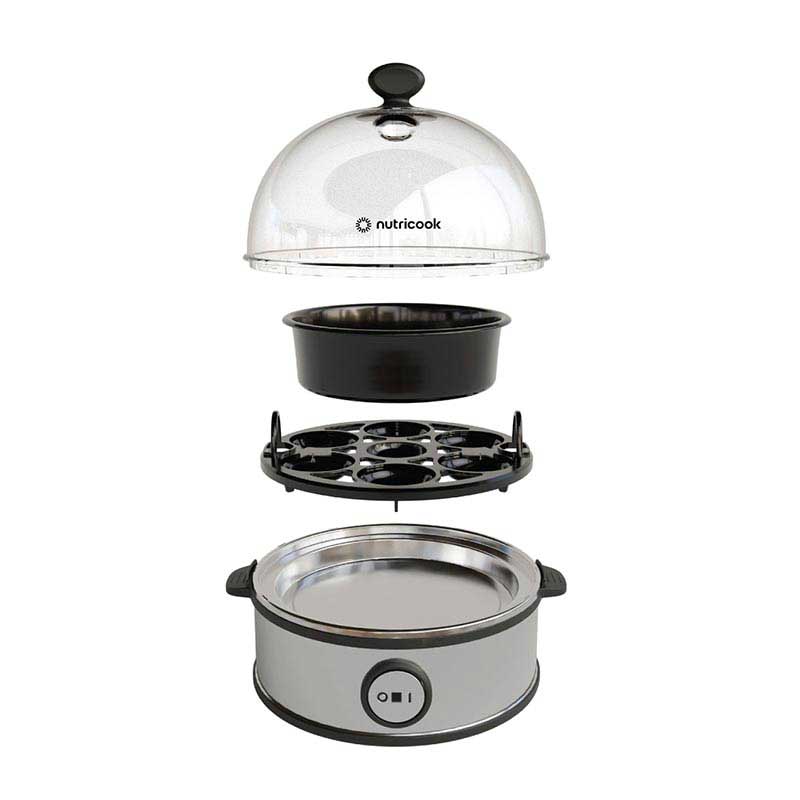 تخممرغپز نوتریکوک مدل NC-EC360 با طراحی ساده و مدرن به رنگ نقرهای، دستگاهی رومیزی، جمعوجور و سبک است که در مدتزمان کوتاهی تخممرغها را آماده میکند.