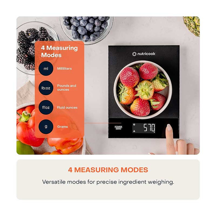 ترازو دیجیتال Nutricook KS205 از چندین واحد اندازهگیری پشتیبانی میکند، از جمله: