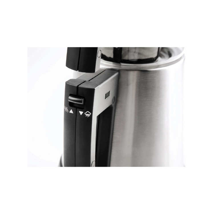 قوری این دستگاه نیز از جنس شیشه با ظرفیت 0/7 لیتر بوده و برای آمادهسازی چند لیوان چای مناسب است. وجود فیلتر صافی از جنس استیل ضدزنگ درون قوری باعث میشود تفالهها جدا شده و چای با طعمی خالص و شفاف در اختیار شما قرار گیرد.