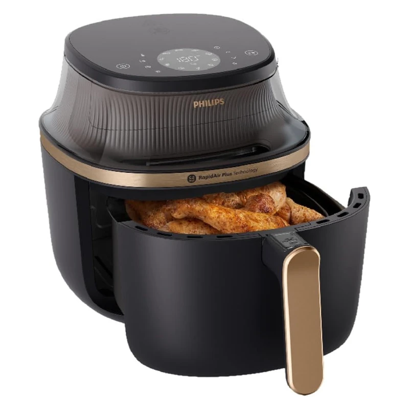 یکی از اصلیترین ویژگیهای این مدل، فناوری RapidAir Plus با طراحی ستارهای است که گردش هوا را به شکلی بهینه انجام میدهد. حرارت به سرعت و یکنواخت به تمام سطوح غذا میرسد و باعث میشود غذا در زمان کمتری ترد شود. در مقایسه با فر معمولی، تا ۵۰ درصد سریعتر پخت انجام میگیرد.