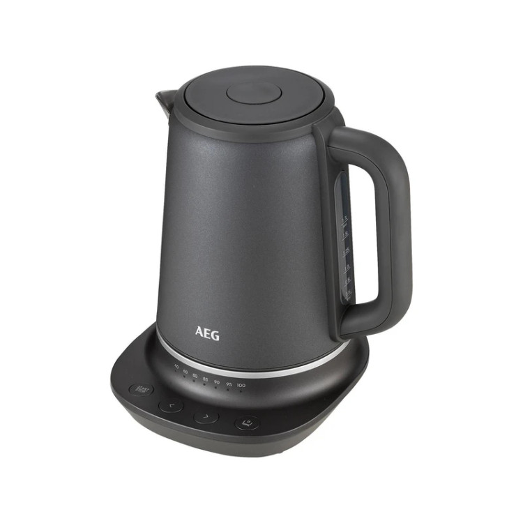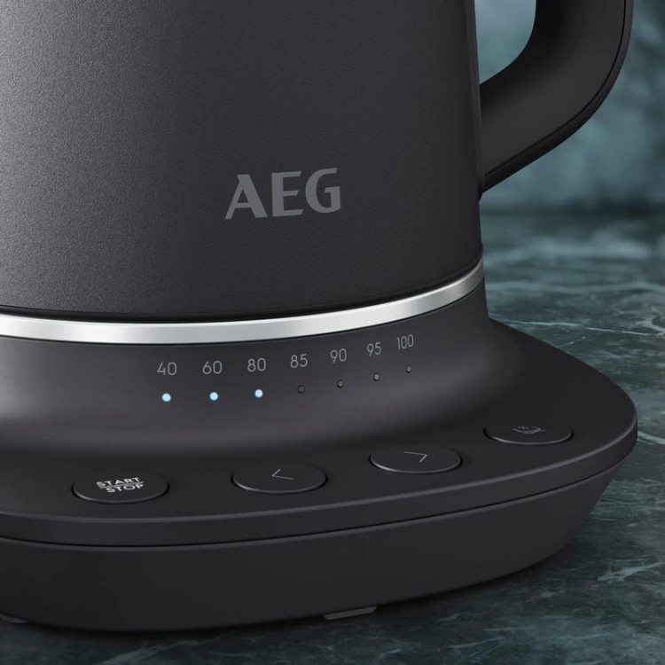 کتری برقی آاگ مدل K7-1-6 با طراحی شیک و رنگ خاکستری تیره، جلوه زیبایی به آشپزخانه میبخشد. گنجایش ۱.۷ لیتری آن برای دورهمیها و تهیه حجم بالای نوشیدنیهای گرم مناسب است. پنل پیشرفته روی پایه، تنظیمات دما را آسان کرده است.