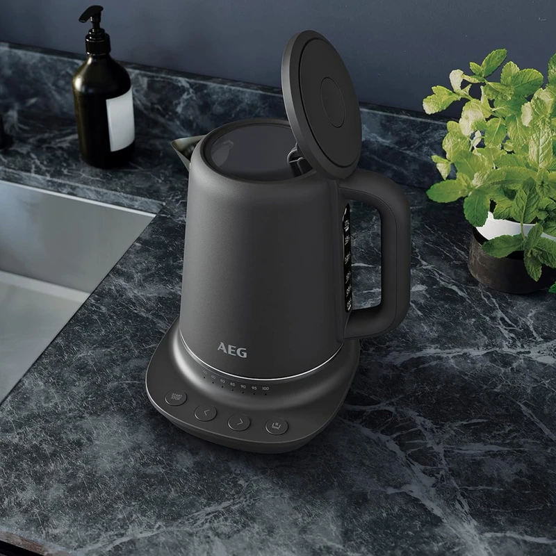 کتری برقی آاگ مدل K7-1-6 با طراحی شیک و رنگ خاکستری تیره، جلوه زیبایی به آشپزخانه میبخشد. گنجایش ۱.۷ لیتری آن برای دورهمیها و تهیه حجم بالای نوشیدنیهای گرم مناسب است. پنل پیشرفته روی پایه، تنظیمات دما را آسان کرده است.