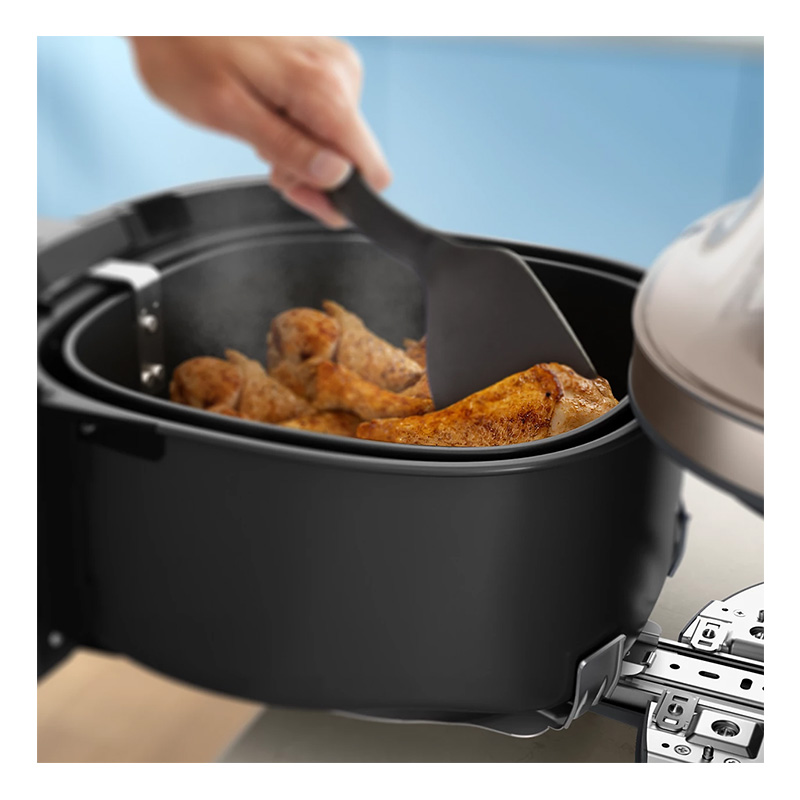به لطف فناوری RapidAir Plus با طراحی ستارهای شکل، گردش هوای گرم در اطراف و میان مواد غذایی سریعتر شده و همه قسمتهای غذا کاملاً یکنواخت پخته و برشته میگردد . این روش باعث میشود غذاها با ۹۰٪ چربی کمتر نسبت به روشهای سنتی سرخ کردن پخته شوند .