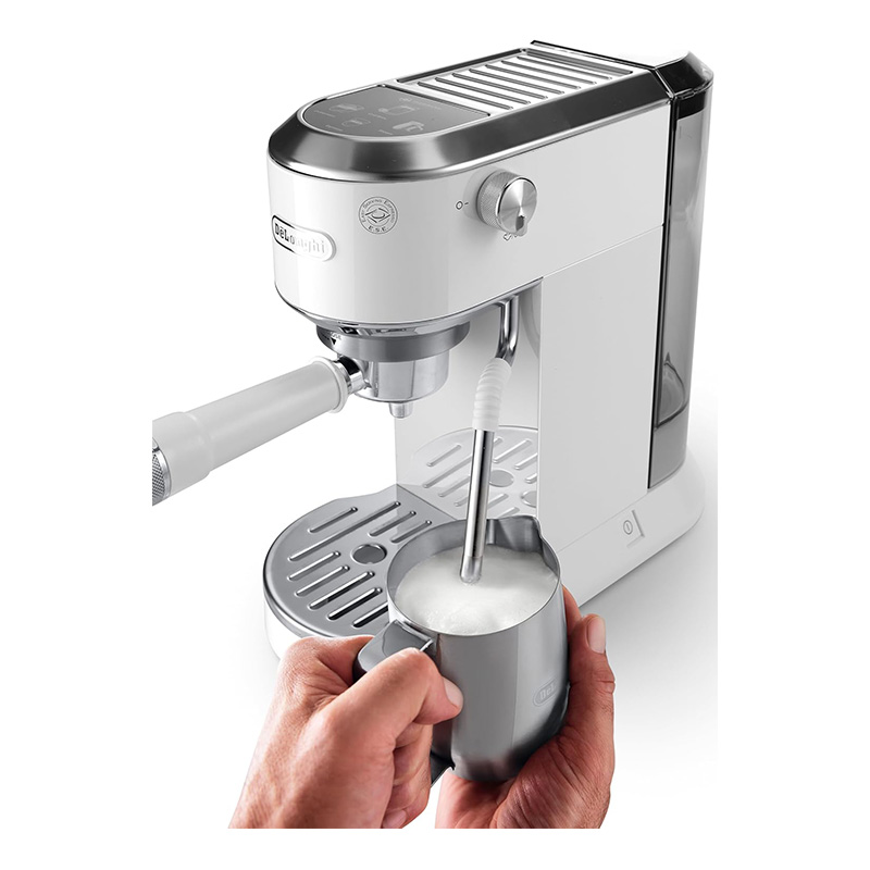 اسپرسوساز دلونگی مدل 890.WI که با نام Dedica Duo نیز شناخته میشود، دستگاهی با طراحی باریک، سبک و مدرن است که برای فضاهای کوچک آشپزخانه ایدهآل میباشد. این مدل با رنگ سفید جذاب و فناوریهای پیشرفته، امکان تهیه انواع نوشیدنیهای گرم و سرد را فراهم میکند .