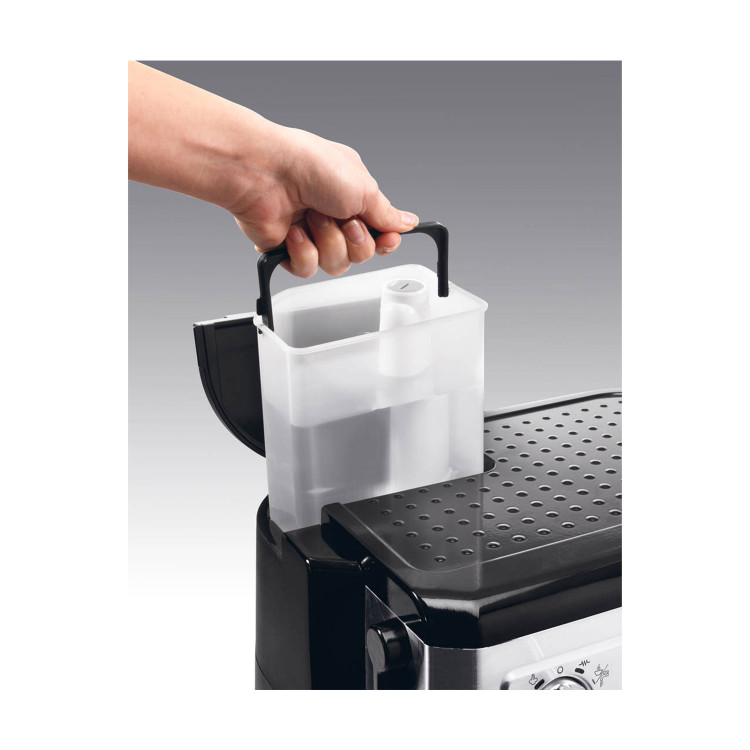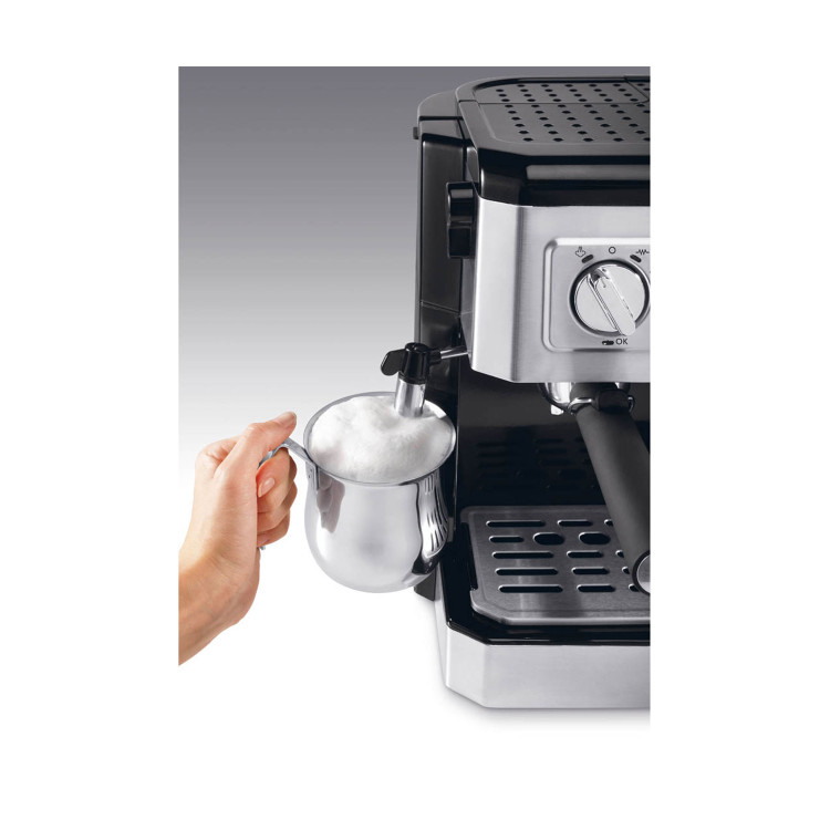 - نازل بخار قدرتمند با قابلیت تنظیم، به شما امکان تهیه فوم شیر غلیظ و نرم برای انواع نوشیدنیهای بر پایه شیر را میدهد.