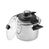 زودپز Belleza 71301/6 به دو سوپاپ اطمینان مجهز شده که در کنار سیستم قفل ایمنی، هنگام بالا رفتن بیش از حد فشار بخار، به طور خودکار بخار اضافی را خارج کرده و از خطر انفجار جلوگیری میکند. این سیستم، آسودگی خاطر شما را هنگام استفاده از زودپز فراهم میکند.
