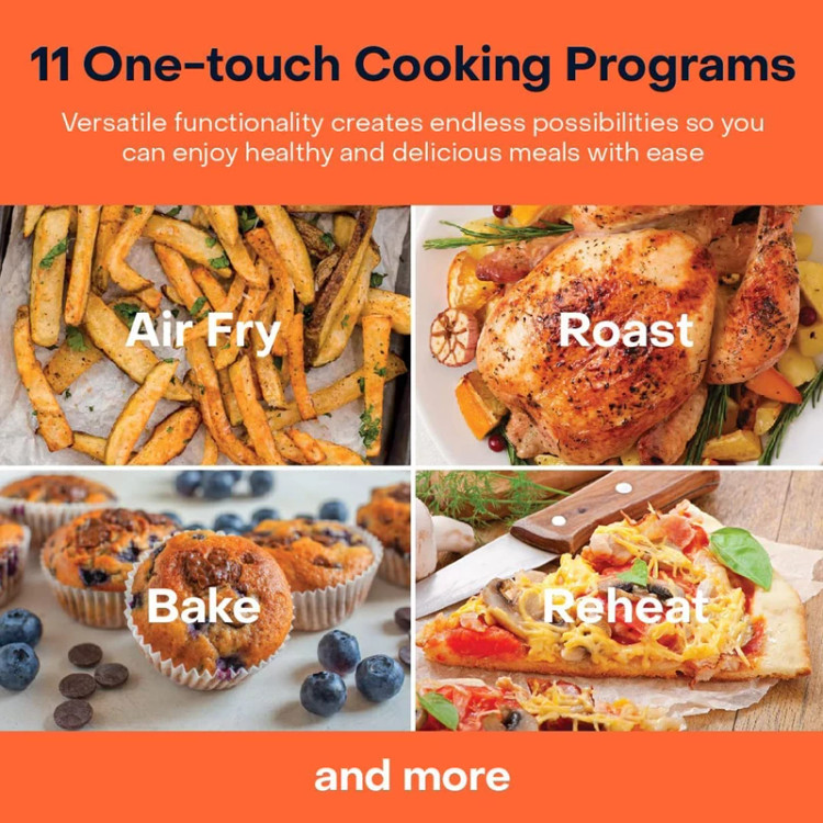 با 8 برنامه پخت هوشمند از پیش تنظیمشده، میتوانید انواع غذاها از جمله سرخکردنیها، گریل، پخت کیک، پیتزا و حتی گرم کردن غذا را تنها با فشردن یک دکمه انجام دهید. -