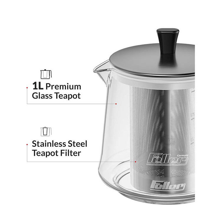 قوری این محصول با ظرفیت 1 لیتر از جنس شیشه مقاوم در برابر حرارت تولید شده و دارای فیلتر استیل ضدزنگ است که از ورود تفاله به نوشیدنی جلوگیری میکند.